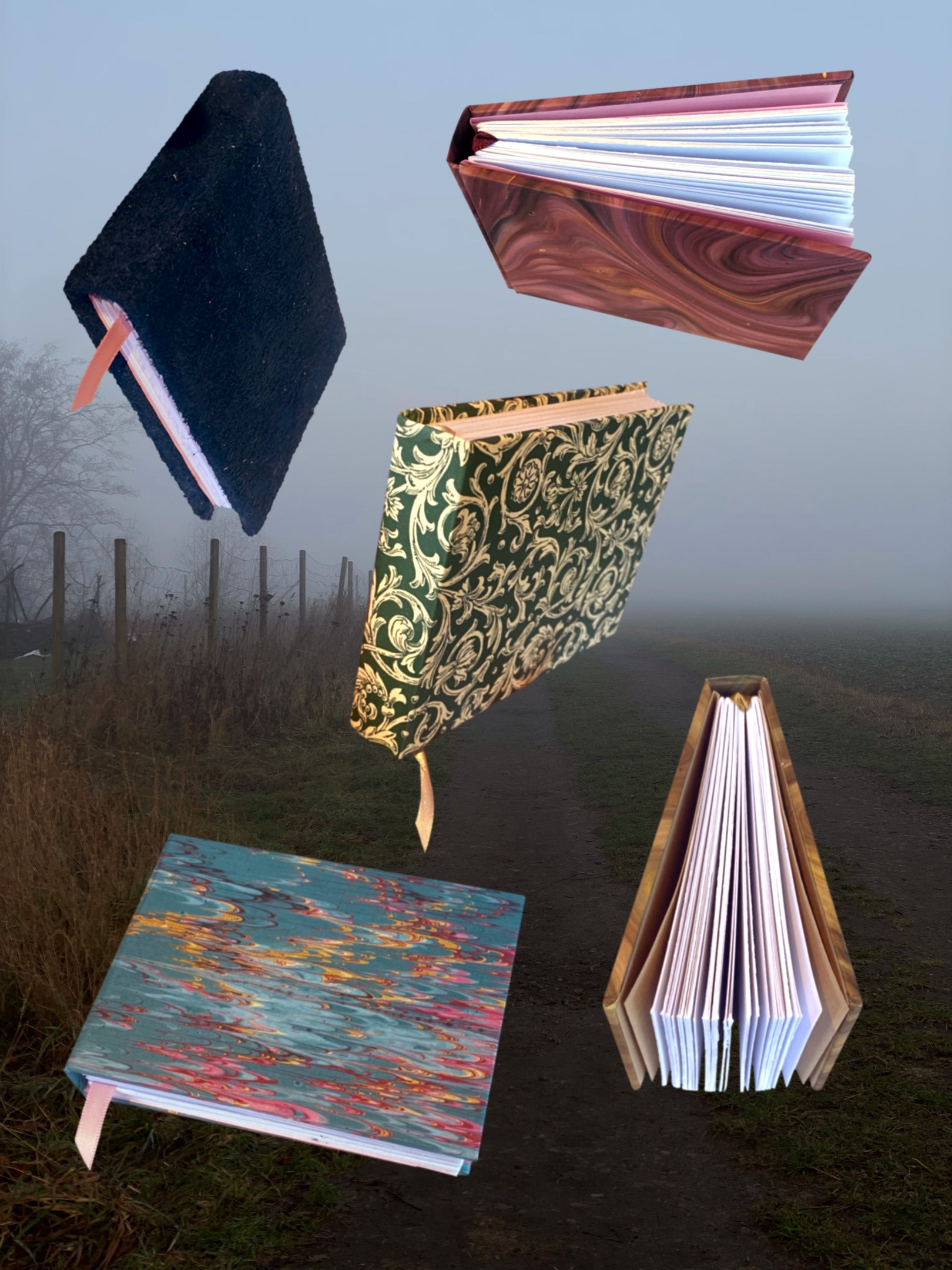 Moa Edvinsson is the person behind MOAEDVIN. She is a Malmö-based bookbinder, illustrator and artist. After graduating with a bachelor's degree in Graphic Design and Illustration at Konstfack in 2024, Moa has introduced her newfound love for bookbinding to her artistry. She prefers to mix in a plant theme and earthy colors. The materials used are a mix of new, found and handmade. Each book is unique and made with curiosity. Reusing and the need to give the old and discarded a second chance, she also creates book jewelry from what is left over.