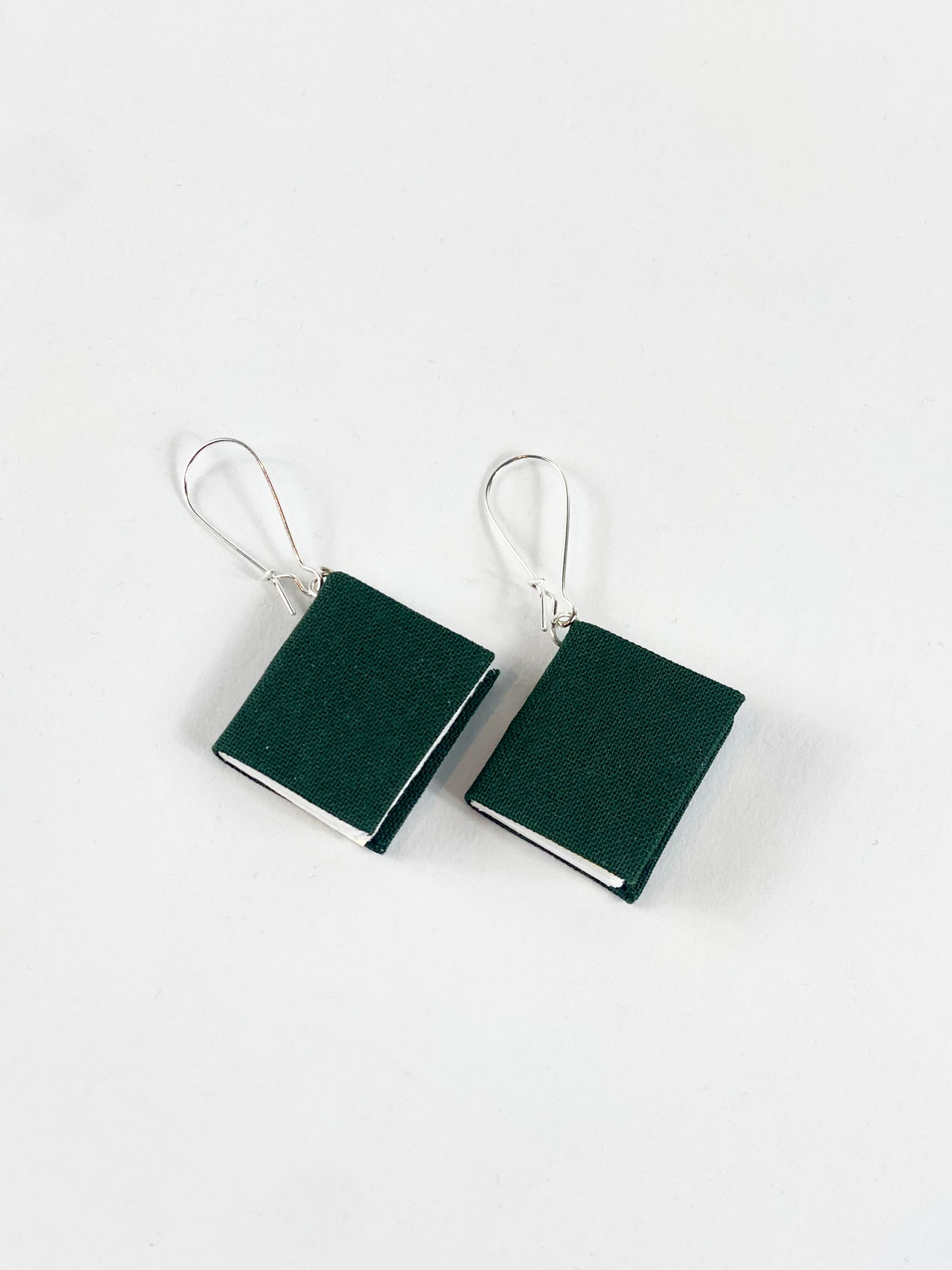 Book Earrings Dark Green Cloth M
